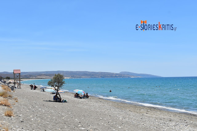 Απέναντι ακριβώς από την παραλία διακρίνονται τα νησάκια Παξιμάδια (ΔΕΙΤΕ ΕΔΩ) ενώ σε σημεία της αμμουδιάς βλέπουμε τις περιφράξεις που έχουν